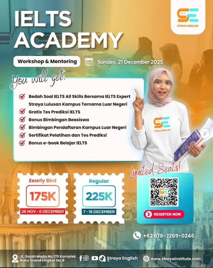 Dapatkan kursus/les Bahasa Inggris, Bahasa Asing, Test Preparation, Prediction, Bimbingan Study Abroad dan program kursus menarik lainnya!
